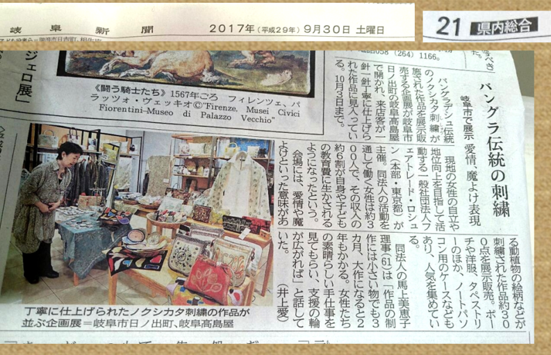現在・松山三越でノクシカタ刺繍展示会開催のお知らせなど