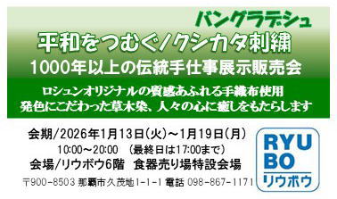 | 沖縄リウボウ 1月13日(火)~1月19日(月) ロシュンオリジナルバングラデシュ・平和をつむぐノクシカタ刺繍展 |